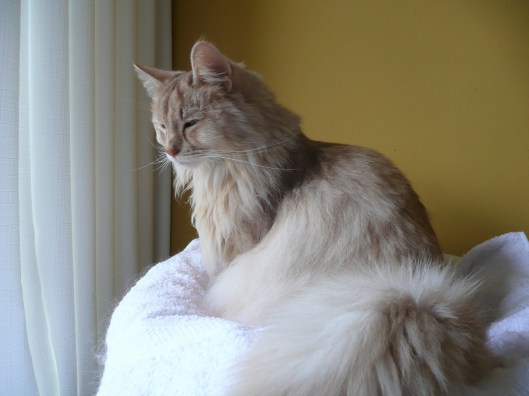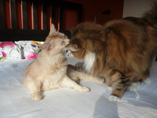 De komende weken zullen we steeds meer zien en merken van de aanstaande kittens. Fealynn gaat uitdijen en we zullen de kleintjes over een poosje voor het eerst kunnen voelen 🙂